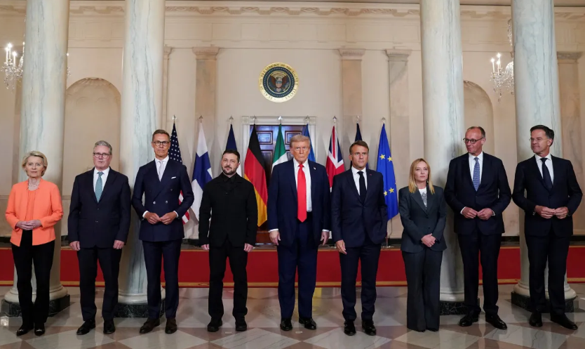 Avrupa Komisyonu Başkanı Ursula Von der Leyen ile birlikte İngiltere Başbakanı Starmer, İtalya Başbakanı Giorgia Meloni ve Fransa Cumhurbaşkanı Emmanuel Macron da fotoğrafta yer aldı..