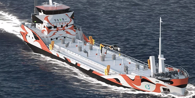 Dünyanın elektrikle çalışan "sıfır emisyonlu" ilk yük gemisi Japonya'da denize inecek.