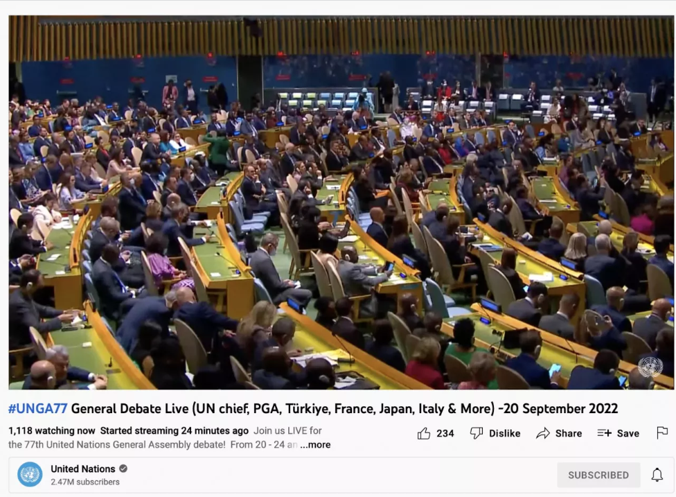 Cumhurbaşkanı Danışmanı İsmail Cesur, Twitter'dan yaptığı paylaşımda, "Birleşmiş Milletler, resmî YouTube kanalındaki Genel Kurulu canlı yayınının başlığında konuşma yapacak 36 ülkeden önemli olanları sıralamış. En başa da Türkiye yazılmış" ifadelerini kullandı.