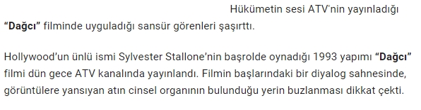 Yaptıkları manşet haberde suçüstü kendilerini eleveren bu abazan yapı zoofili (hayvanlara cinsel taciz) bir hastalığın tezahürü olarak illa da ''atın cinsel organın görmek istiyoruz'' tarzında bir yaklaşımla ATV’nin yaptığı bu duyarlı sansürden rahatsız oldu.