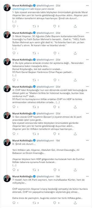 Meral Akşener'in 30 Ağustos Zafer Bayramı kutlamalarında CHP'li İBB Başkanı Ekrem İmamoğlu'nu Fatih Sultan Mehmet'e benzettiğini hatırlatan Kelkitlioğlu, "Bu öyle yabana atılacak cinsten bir açıklama değil… Neresinden bakarsanız bakın mesajlarla dolu" değerlendirmesinde bulundu.