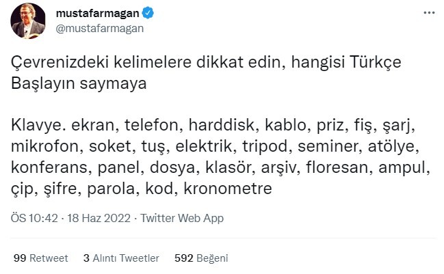 Çevrenizdeki kelimelere dikkat edin, hangisi Türkçe!