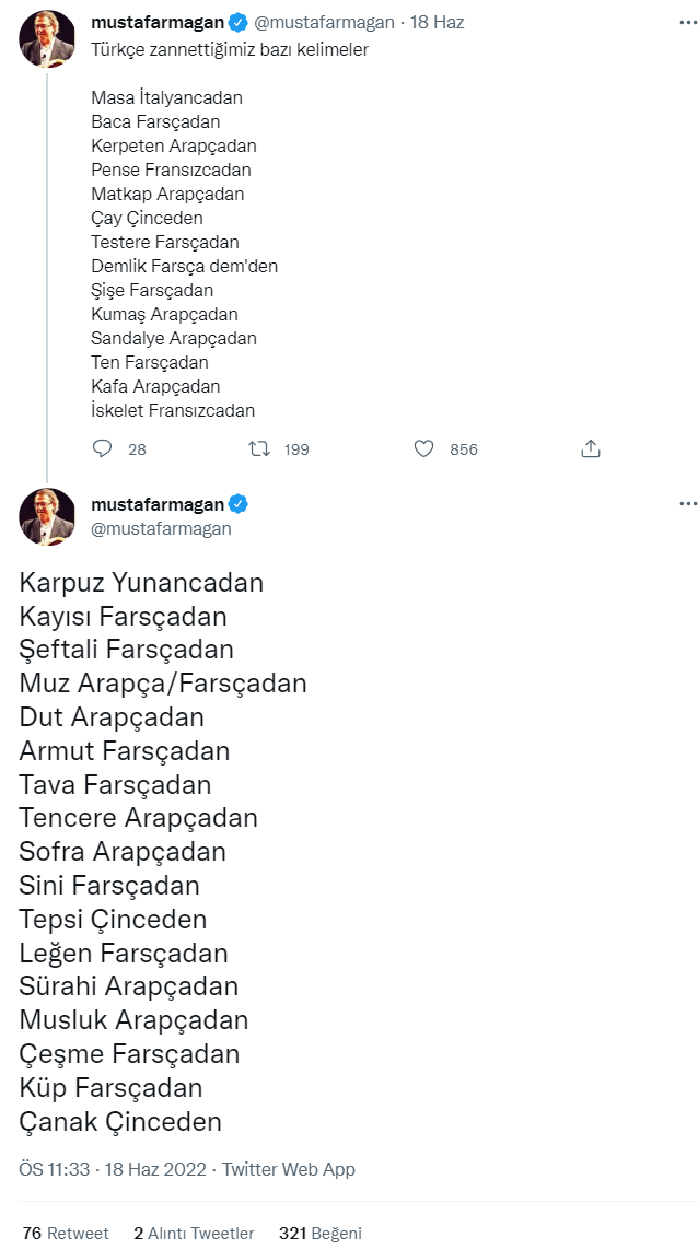 Tarihçi Yazar Mustafa Armağan, sosyal medyadan Türkçe ile ilgili dikkat çeken bilgiler verdi.