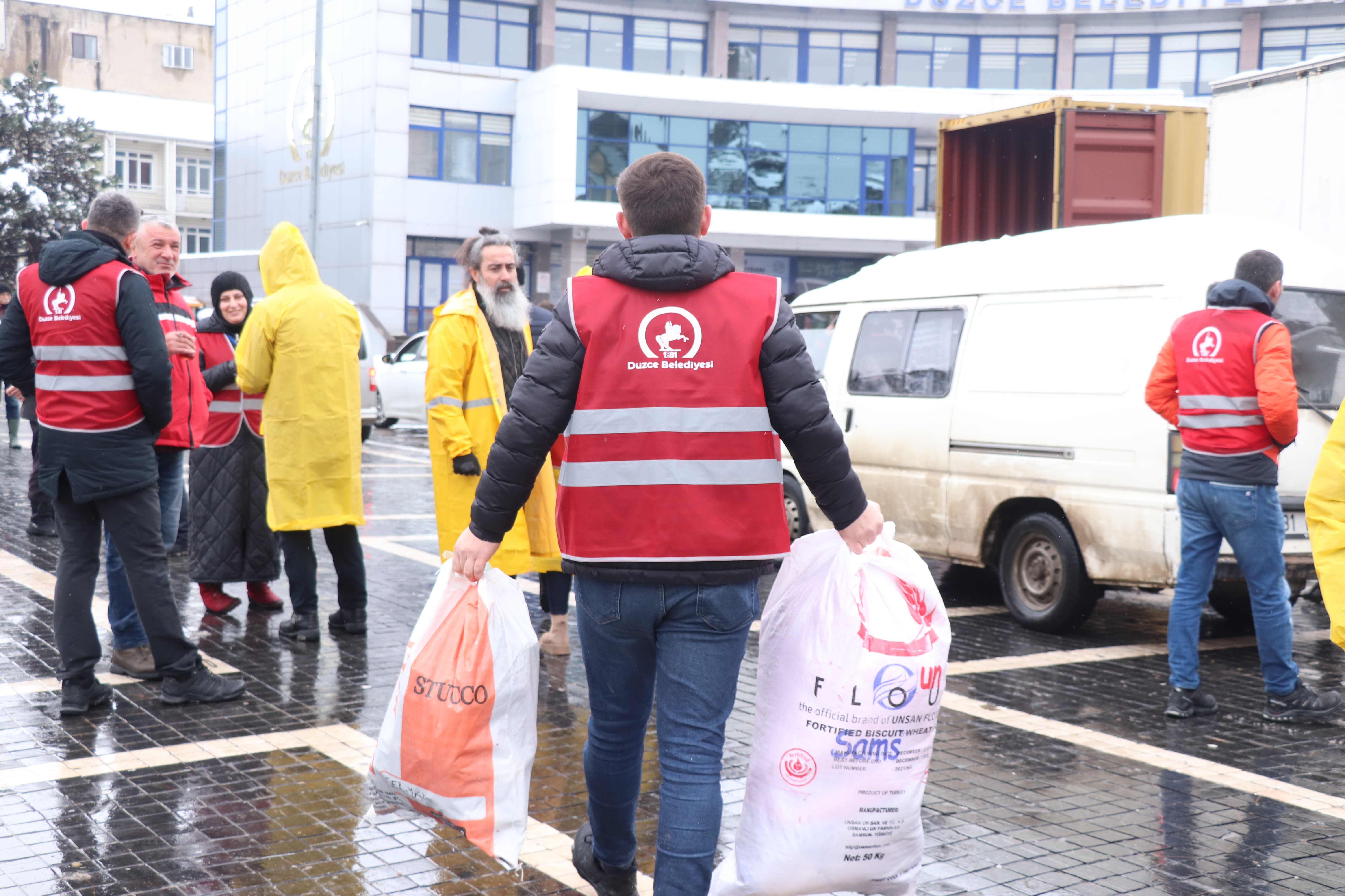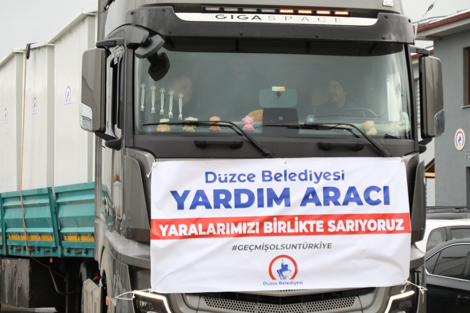İnsani yardım, arama kurtarma, lojistik ve ekipman desteğinin yanında depremin ilk anından itibaren başlatılan seferberlik çerçevesinde vatandaşlarıyla birlik olan Düzce Belediyesi, ‘Uzat Elini Düzce’ yardım kampanyasıyla battaniyeden elektrikli ısıtıcıya, kışlık giysilerden jeneratöre, mutfak tüpünden kömür sobasına, bebek malzemelerinden hijyen ürünlerine kadar on binlerce malzemenin yanı sıra bugüne kadar tonlarca gıda malzemesinin de içinde bulunduğu 38 TIR ve 45 Kamyondan oluşan yardım malzemesi, 16 TIR içme suyu, 3 TIR palet, 3 TIR odun, 4 TIR duş ve tuvaleti AFAD koordinasyonunda afet bölgelerine ulaştırdı.