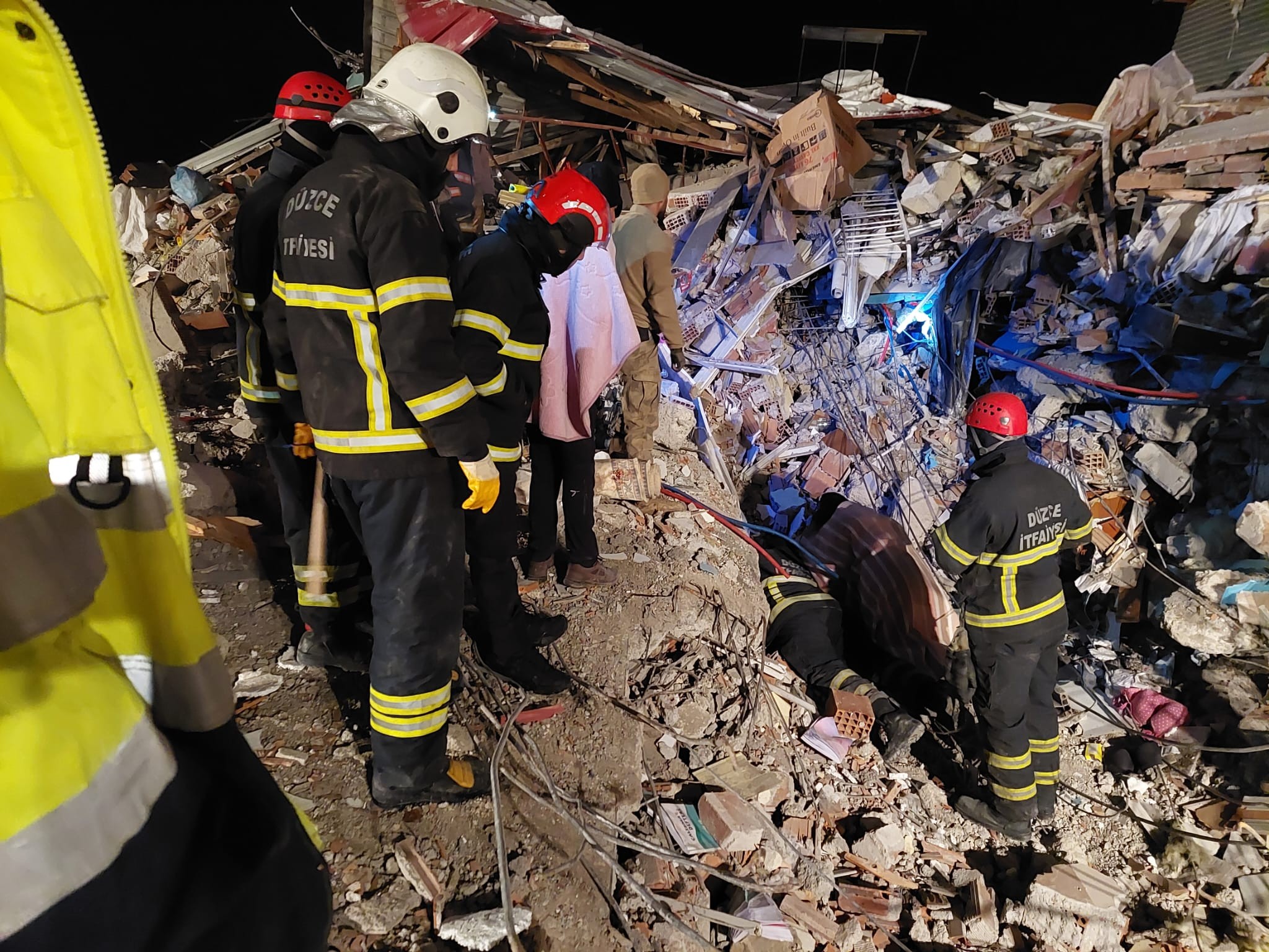 Düzce Belediyesi, Başkan Dr. Faruk Özlü liderliğinde hızlı şekilde oluşturulan kriz yönetim merkezi nezdinde çalışma başlatırken, ilk etapta 2 araç ve 9 personelden oluşan İtfaiye Müdürlüğüne bağlı arama kurtarma ekibi de afet bölgesine doğru yola çıkartıldı. Akabinde 2 araç ve 13 kişiden oluşan ikinci ekibini de bölgeye sevk eden Düzce Belediyesi, 13 Şubat tarihine kadar devam ettikleri arama kurtarma çalışmalarında 12 depremzedenin sağ olarak enkazdan çıkartılmasını sağladı.