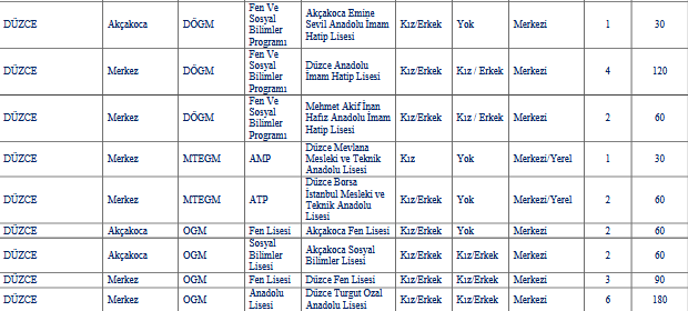 Düzce liseleri taban puanı 2021, Düzce liseleri başarı sıralaması ve liseleri kontenjanları nelerdir?