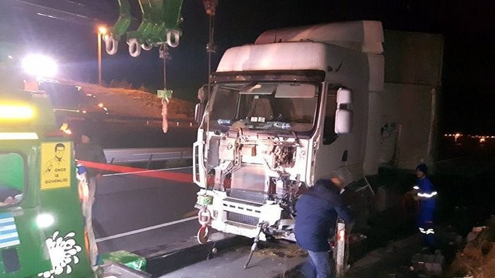 Meydana gelen trafik kazasında tır sürücüsü ve yanında bulunan arkadaşı hafif yaralandı.