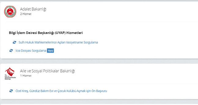 E-Devlet'te Adalet Bakanlığı'nın "İcra Dosyası Sorgulama" başlığı altında açılan hizmet ile hakkınızda icra dosyası davası olup olmadığının sorgulaması yapılabiliyor..