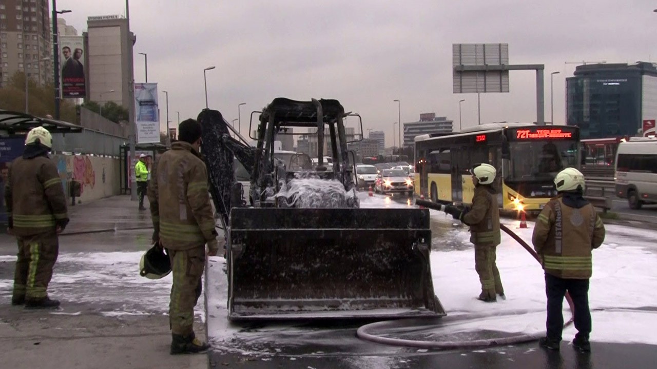 İstanbul'un Cevizlibağ ilçesinde E5'te seyir halinde olan iş makinesi bilinmeyen bir nedenle alev alev yandı. Yangın nedeniyle trafikte yoğunluk oluştu.