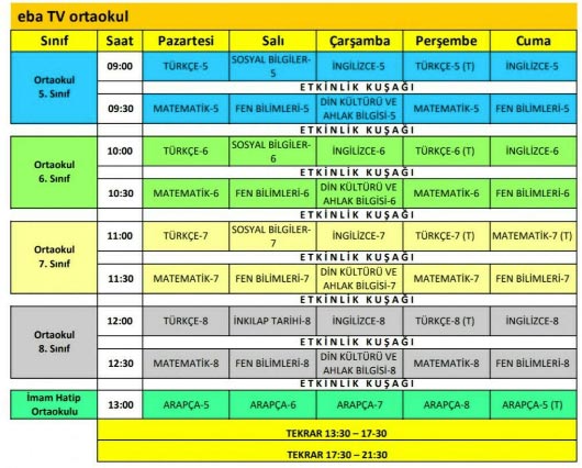TRT haftalık yayın akışı: eba.gov.tr’de
