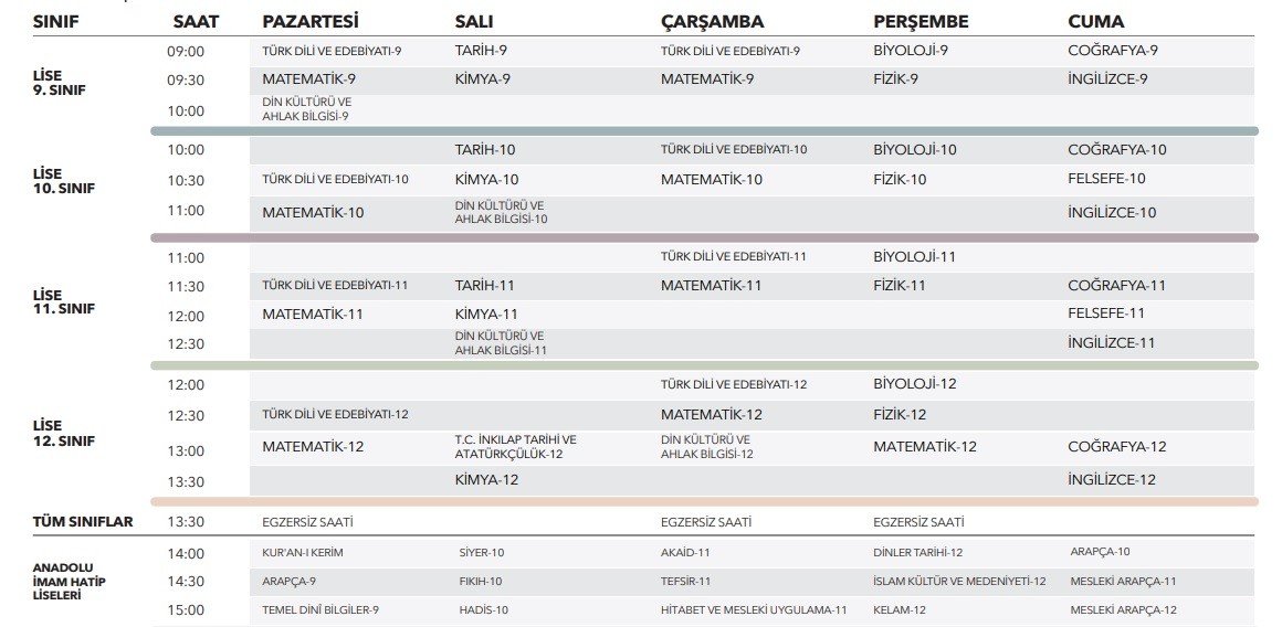 EBA lise ders programı | Uzaktan eğitim lise ders saatleri