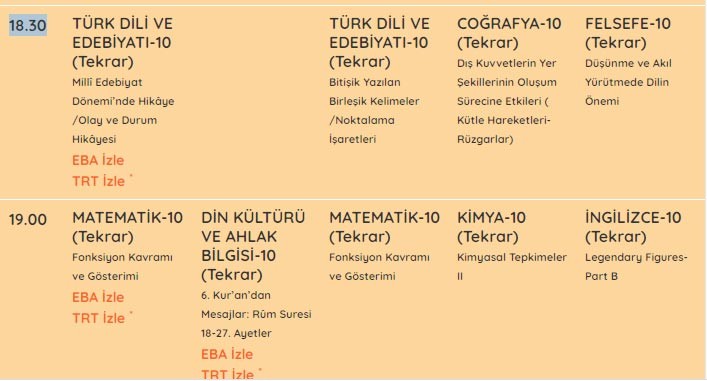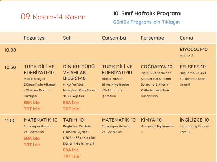 EBA TV 10. sınıf canlı ders saatleri! 10. sınıf ders programı EBA TV canlı