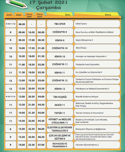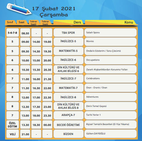 EBA TV ortaokul canlı ders saatleri 17 Şubat