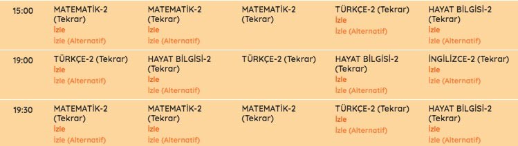 23 Mart Pazartesi günü milyonlarca öğrenci TRT EBA TV İlkokul, EBA TV Ortaokul ve EBA TV Lise uzaktan eğitime başlayacak. Milli Eğitim Bakanlığı (MEB), uzaktan eğitimde kullanılacak TRT-EBA TV'nin yayın programını açıkladı. İşte EBA TV 2. Sınıf günlük haftalık ders program EBA TV ders yayını.