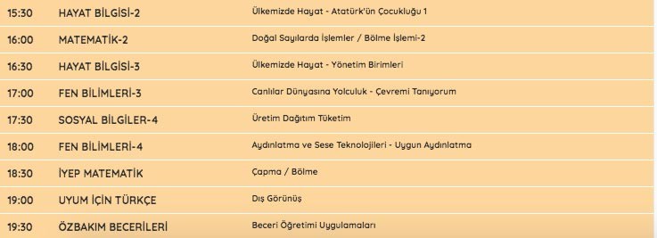 TRT EBA TV tüm sınıfların ders programı için tıklayınız