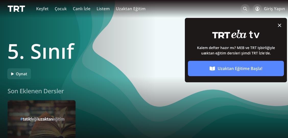 TRT EBA TV internet üzerinden 5. sınıf canlı ders izle