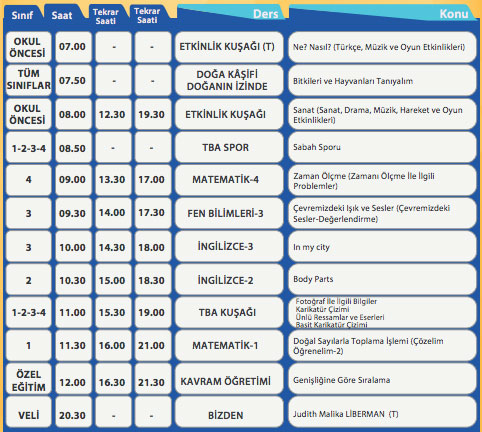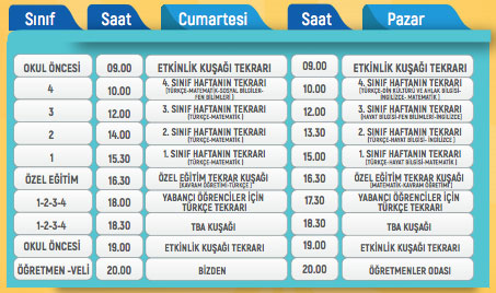 TRT EBA TV ilkokul, canlı yayın ders saatleri