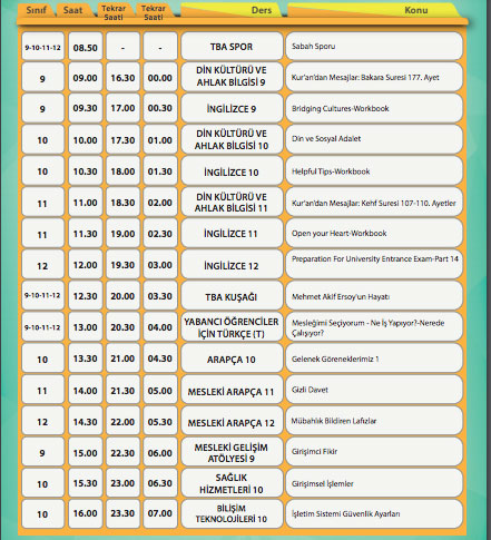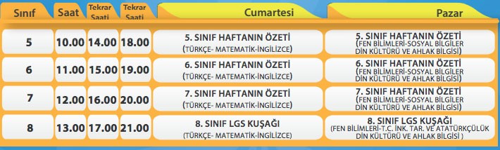 TRT EBA TV ortaokul canlı yayın ders saatleri