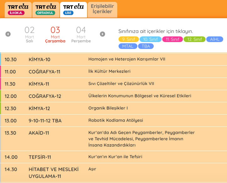 MEB EBA TV canlı ders saatleri-ders programı için tıklayın