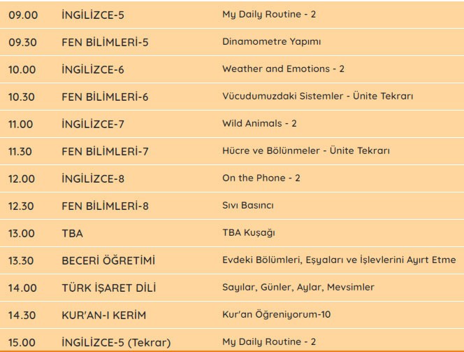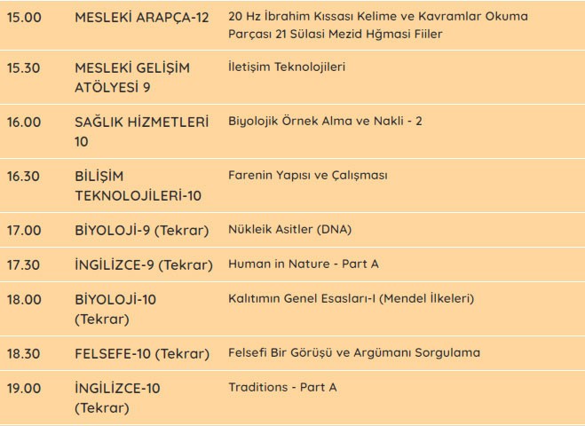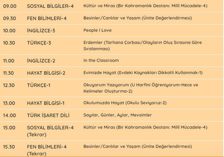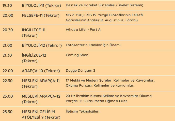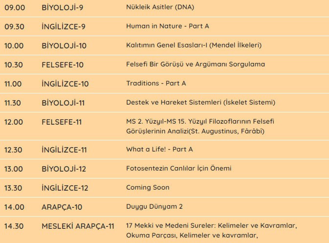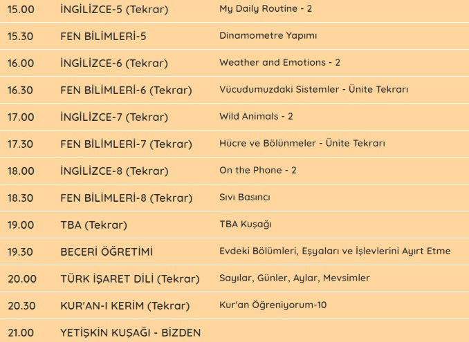 EBA TV canlı ders programı, TRT EBA TV canlı ders saatleri için tıklayın.