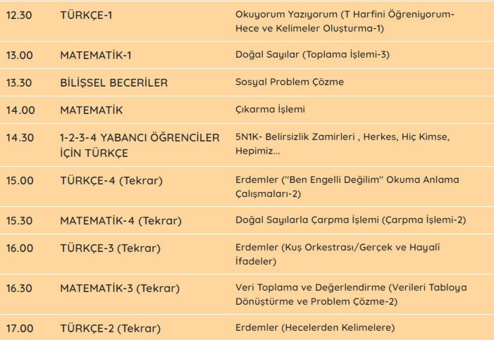 EBA TV canlı ders saatleri EBA ilkokul ortaokul lise ders programı