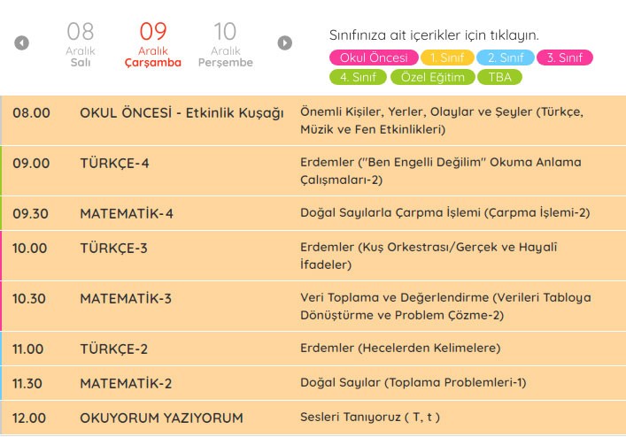 9 Kasım Salı EBA ders programı ve canlı ders saatleri için tıklayın