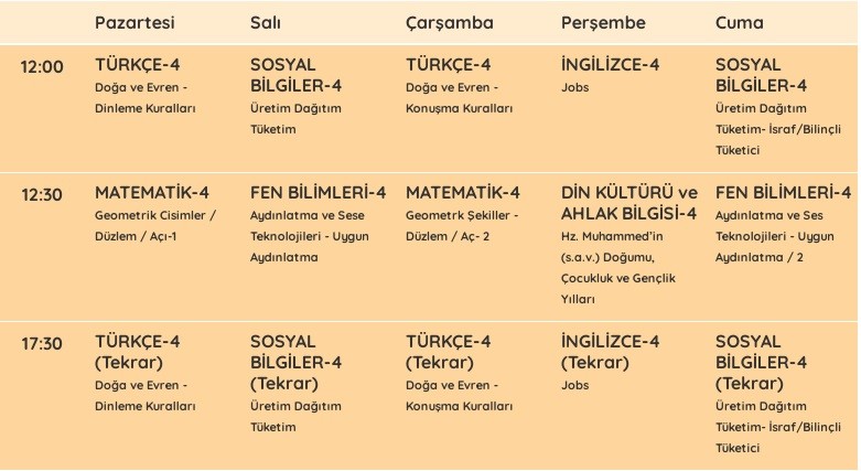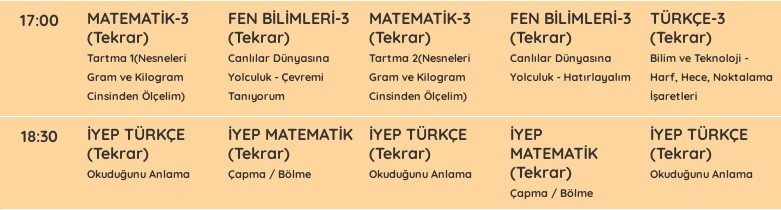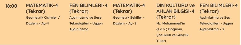 EBA TV ORTAOKUL DERS TEKRAR SAATLERİ İÇİN TIKLAYINIZ