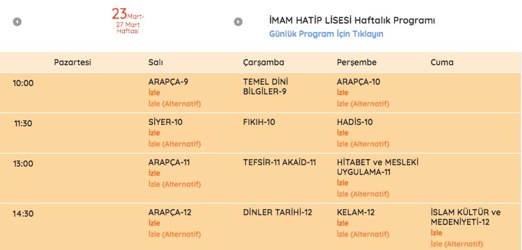 EBA TV İMAM HATİP LİSESİ CANLI DERS ANLATIMI - GÜNLÜK HAFTALIK DERS PROGRAMI VE DERS SAATLERİ İÇİN TIKLAYINIZ