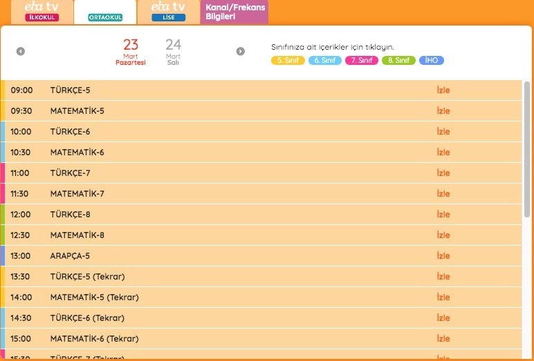 EBE TV ders programı, ders saatleri ve ders tekrarı saatleri için tıklayınız