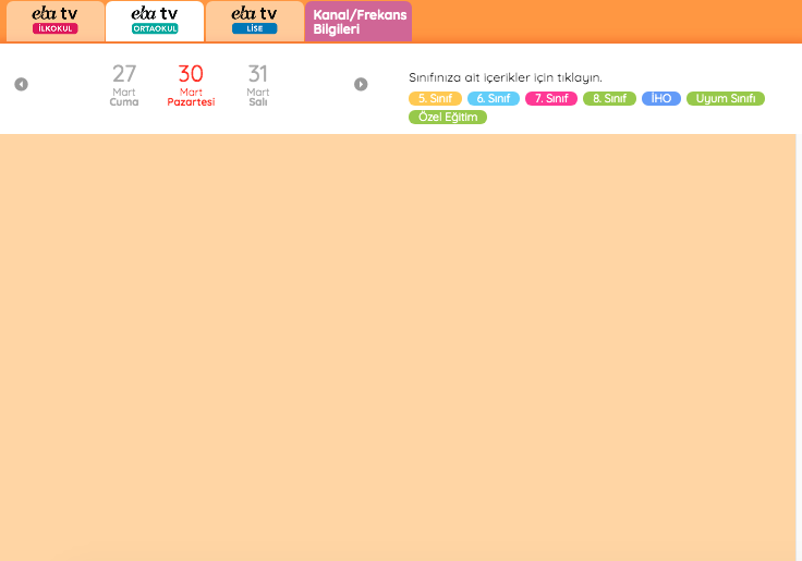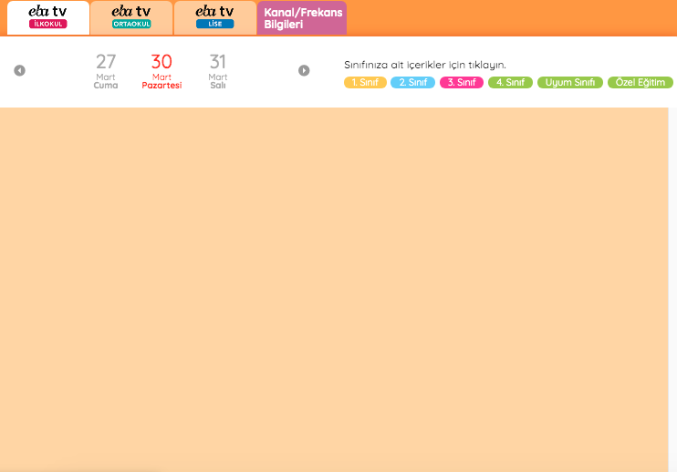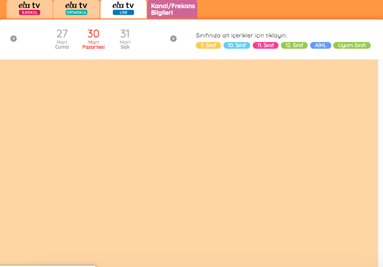 Milli Eğitim Bakanlığı okulları açılmasını 30 Nisan'a kadar uzatılmasına karar verildi. TRT EBA TV uzaktan eğitim sistemi için, bugünden başlayarak 3 Nisan'a kadar devam edecek ders programını paylaştı. Ancak öğrenci ve veliler EBA TV ders programını öğrenmek için MEB eba.gov.tr’ye girdiklerinde tüm sınıfların ders programını göremiyor. Peki EBA TV’de ders programı neden görünmüyor?