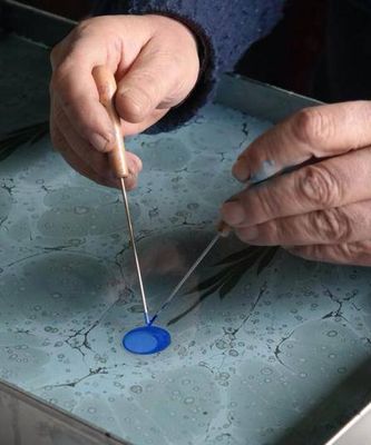 Kitaptaki tariflere göre malzemeleri tamamlayıp kendi kendime başladım çalışmaya. Topkapı Sarayı’nda tezhip ve minyatür kurslarına giderken de yaptıklarımı götürüp hocalarıma gösteriyordum. Bir gün hocam Cahide Hanım “İstanbul Sanatlar Çarşısı restore edilmiş ve her hücreye bir sanat dalını koyuyorlar. Sana da burada bir hücre verelim, sen de burada ebru yap” dedi. Orada bana da bir hücre verdiler.