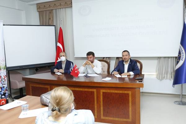 Şube Başkanı Doç. Dr. Yusuf Zeren Eğitim Bir Sen İstanbul 8 nolu şube olarak kuruluştan bugüne yapılan çalışmalar ve üniversite çalışanlarının haklarının korunması ve kazanımlar elde edilmesi çerçevesinde geniş bir açılış konuşması yaptı. Üniversite çalışanlarının yaşadığı en önemli sorunlardan biri olan Mobbing konusunda bir Mobbing Kurulunun kurulması ve işletilmesi sürecine dair bilgilendirme yaptı. Şube Başkanı ve Başkan Yardımcısı Mustafa Demir, personelden gelen 3600 ek gösterge, üniversiteler arası tayin hakkının merkezi olarak yönetilmesi, 50/D ile görev yapmakta olan araştırma görevlilerinin sorunları, üniversite idari personeline ek kaynak sağlanması, unvan değişikliği sınavının düzenli olarak uygulanmaması üzerine yoğunlaşan soru ve sorunların oluşturduğu konu başlıkları ile ilgili gerek toplu sözleşme süreçlerinde gerekse meclis çalışmaları kapsamında kat edilen yolları aşamalar anlattılar.