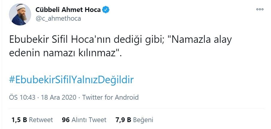 "Ebubekir Sifil Hoca'nın dediği gibi; 'Namazla alay edenin namazı kılınmaz' "