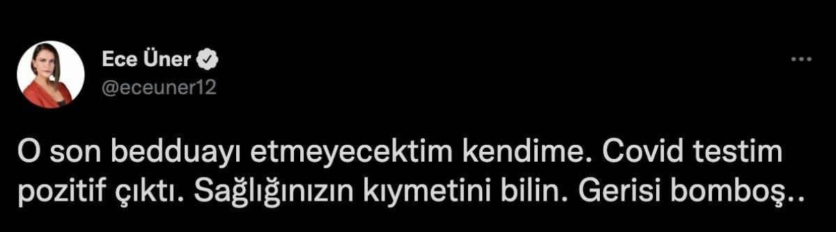 Üner, test sonucunu sosyal medya hesabından paylaşarak şu ifadeleri kullandı: