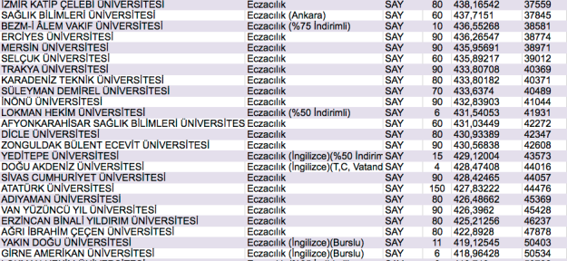 Eczacılık taban puanları ve başarı sıralamaları 2020