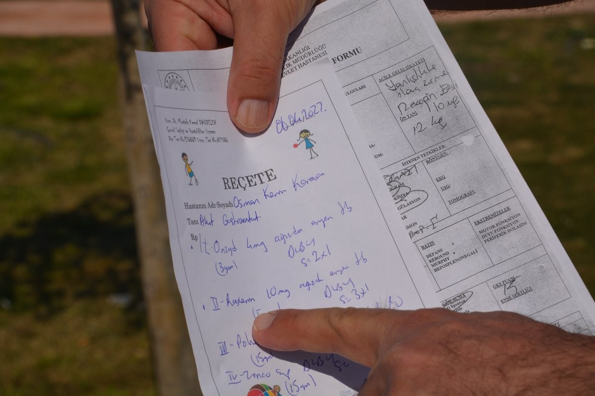 Baba Mustafa Karaca, müdahale sırasında çocuğa verdikleri ilaç kutusunu ve reçeteyi doktorlara gösterdi. Doktorlar ise babaya reçetede yazılan ilacın dışında farklı bir ilacın verildiğinin tespit edildiğini söyledi.