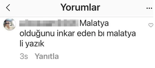 Bu sözlerine bir takipçi, “Malatyalı olduğunu inkar eden bir Malatyalı yazık” yorumunu yaptı.