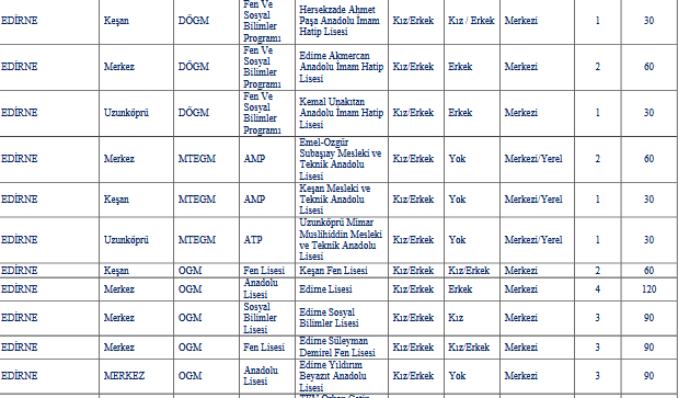 Edirne liseleri taban puanı 2021, Edirne liseleri başarı sıralaması ve liseleri kontenjanları nelerdir?