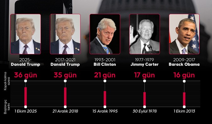 Ülkede harcama yetkisini kaybeden federal kurumlar faaliyetlerine devam edemiyor. Cumhuriyetçiler ve Demokratlar bütçe üzerinde uzlaşmaya varamazken, taraflar arasındaki görüş ayrılığı kapanmanın süresini uzatıyor.