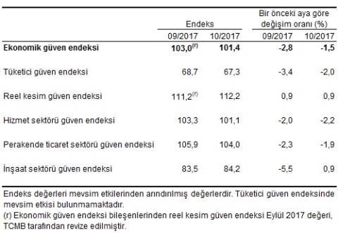 Ekonomik güven endeksi, Ekim 2017