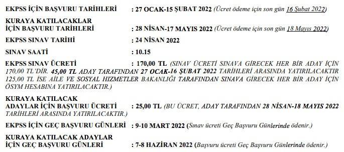Sınava ilişkin ayrıntılı bilgi, 2022-EKPSS Kılavuzundan öğrenilebilecek. ÖSYM tarafından 24 Nisan'da gerçekleştirilecek sınava başvurular, 15 Şubat'a kadar sürecek.