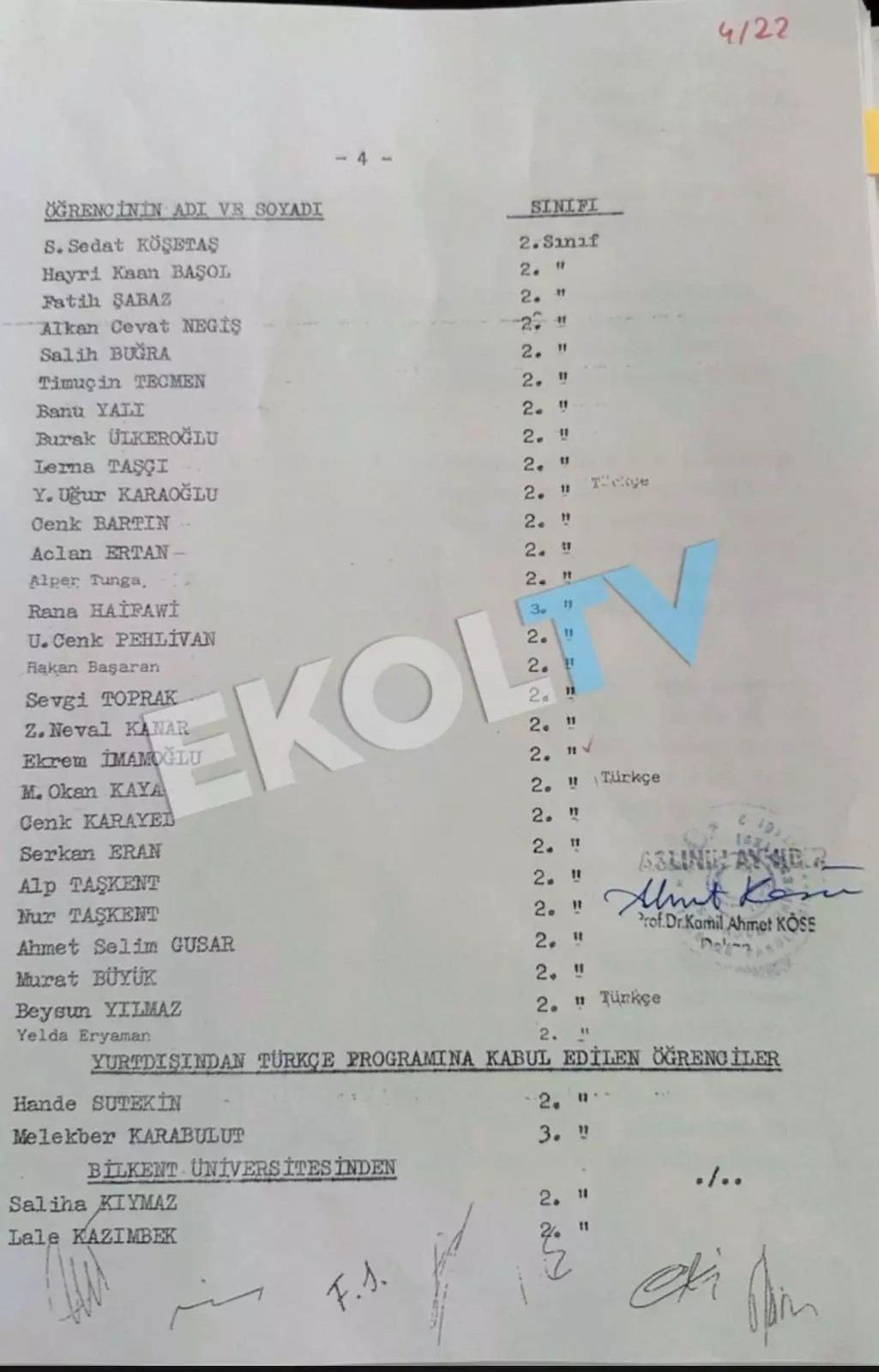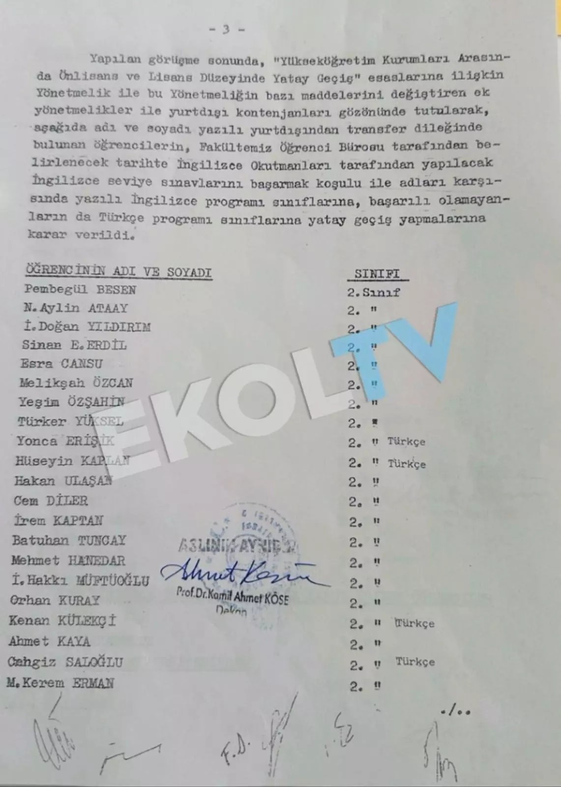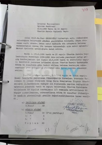 1990 yılında Ekrem İmamoğlu ile birlikte İstanbul Üniversitesi’ne yatay geçiş hakkı kazananların listesi: