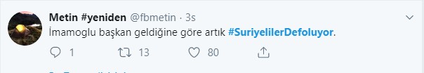İstanbul'daki seçimleri CHP'li Ekrem İmamoğlu'nun kazanmasının ardından sosyal medyada Kemalistlerden ırkçı sesler yükselmeye başladı. Sosyal paylaşım sitesi twitterda birçok kişi 'Suriyelilerdefoluyor' etiketiyle yaptıkları paylaşımlarda skandal ifadeler kullandı.