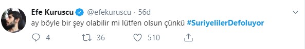 Sosyal medyada '#Suriyelilerdefoluyor' etiketiyle yapılan paylaşımlara birçok kişi tepki gösterirken 'ilk icraatları faşistlik, ırkçılık oldu. Hepimize geçmis olsun' yorumları yapıldı.