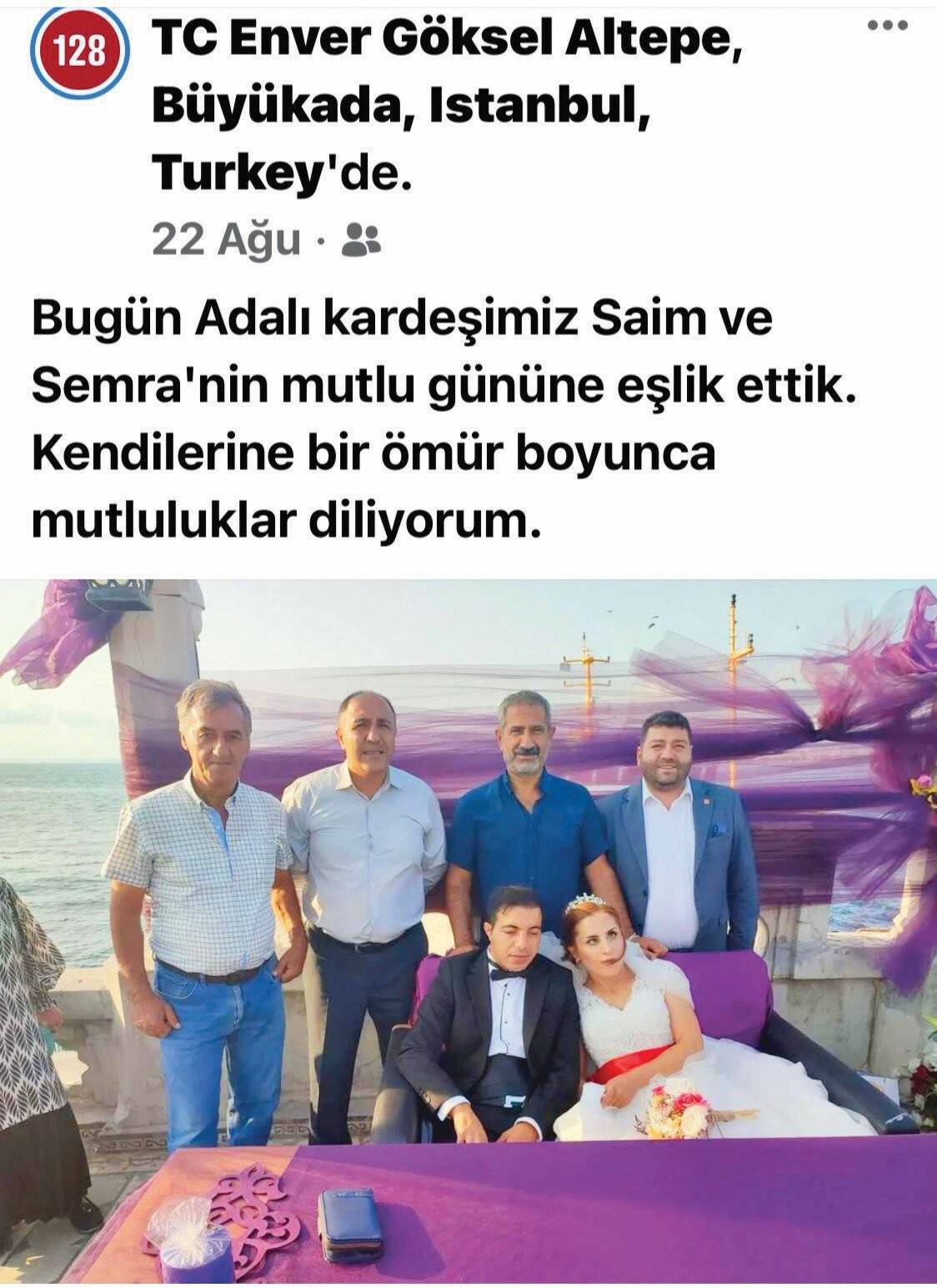 22 Ağustos’taki düğün organizasyonunun, CHP’li Adalar Belediyesi’nin engelli personeli Saim Şelik ile Semra Kaleder’in düğünü olduğu belirlendi. CHP il ve ilçe yönetiminin de tam kadro düğünde olduğu orataya çıkarken, TÜGVA’ya yapılan gece baskınına katılıp zabıta ekiplerine amirlik eden CHP Adalar İlçe Başkanı Ali Ercan Akpolat ile baskında TÜGVA’daki gençlere saldıran CHP Adalar Gençlik Kolları Başkanı Enver Alsel Altepe ve CHP İl Yönetim Kurulu Üyesi Enver Doğan'ın da düğüne katıldığı öğrenildi. Gerçek ise bu üç ismin gelin-damatla fotoğraf çektirip sosyal medya hesaplarından paylaşması ile ayyuka çıktı.