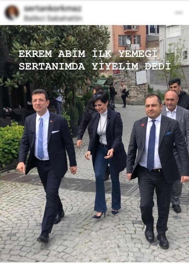 İmamoğlu'nun ilk mesai gününde Büyükşehir Belediyesi'nde yemek yemediği, İstanbul'un en ünlü balıkçılarından birisine gittiği belirlendi. Cankurtaran'daki lüks balıkçıda resteuran sahibi tarafından karşılanan İmamoğlu'nu yine restoran sahibi İnstagram hesabından yaptığı paylaşımla ele verdi. Fotoğrafta İmamoğlu'nun ekibi ile mekana giririş yaptığı görülüyor.