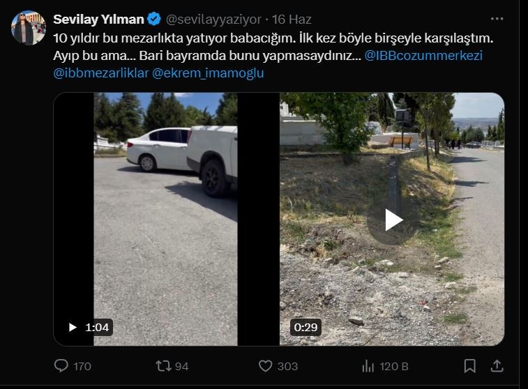 Babasının kabrini ziyaret eden yazar Sevilay Yılman gördüğü manzaraya isyan etti.