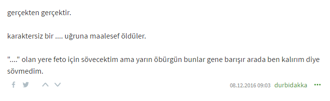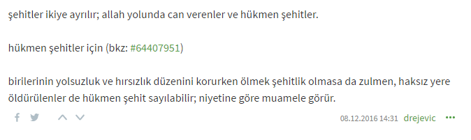 ‘15 temmuz'da ölenlerin şehit olmadığı gerçeği’ başlığı ile açılan tartışmaya onlarca hain de destek verdi. Üstelik yapılan yorumlar akıl alır gibi de değildi.