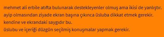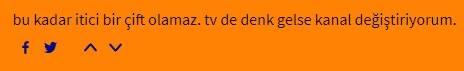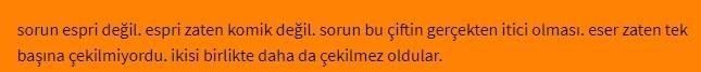 "Karı-koca arasındaki naif bir şakadan bile duyar kasmak isteyenler için şunu söylemek isterim; Televizyonda öpüşme görünce koşarak kanal değiştirmek zorunda olarak büyümedim ve burası özgür bir ülke. Eminim bu şakayı bir erkek yapsa bu kadar üstüne durulmazdı. Kadın olarak bu şakayı yaptığım için kendimi hiç rahatsız hissetmiyorum. Açıkçası bana bu alanı açtığı için de ekstra teşekkür ederim kocacığım."