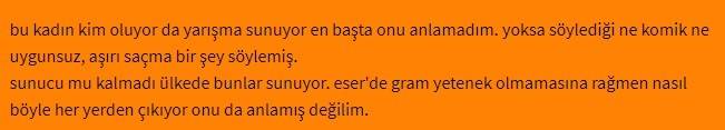 Programı sunmak için sahneye çıkan Eser Yenenler, eşine "Bırak ben sunayım istersen. Sen kendini bana bırak" dedi. Eser Yenenler'in eşi Berfu Yenenler'in cevabı ise ekran başındaki kişilere "ne ahlak ne mahremiyet kaldı" dedirtti.